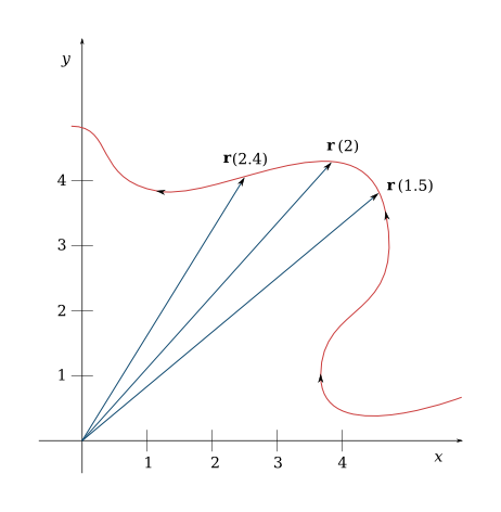 The figure shows the path of a particle that moves with position vector at time .