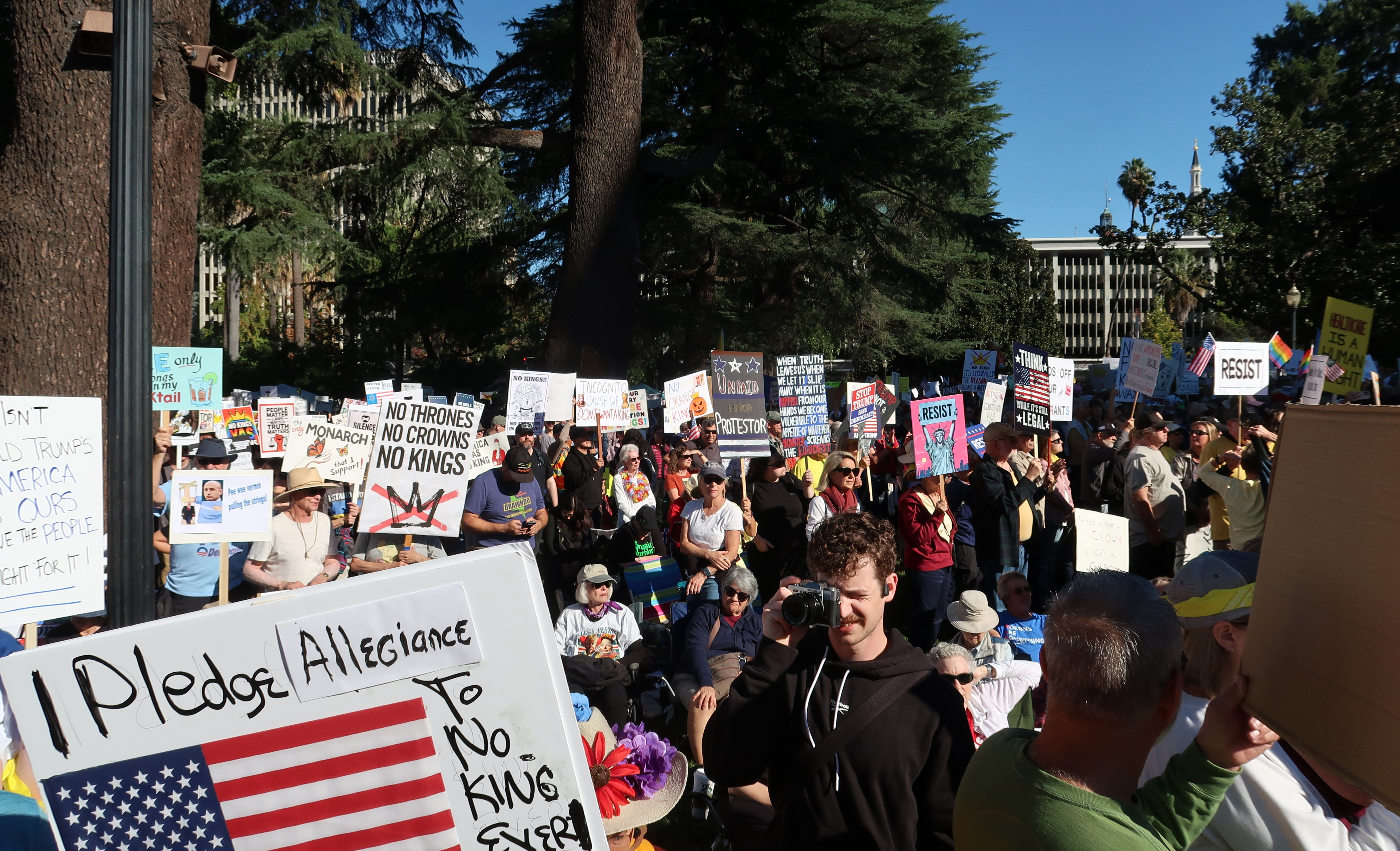 Protesters gathering up in front of the Capitol.