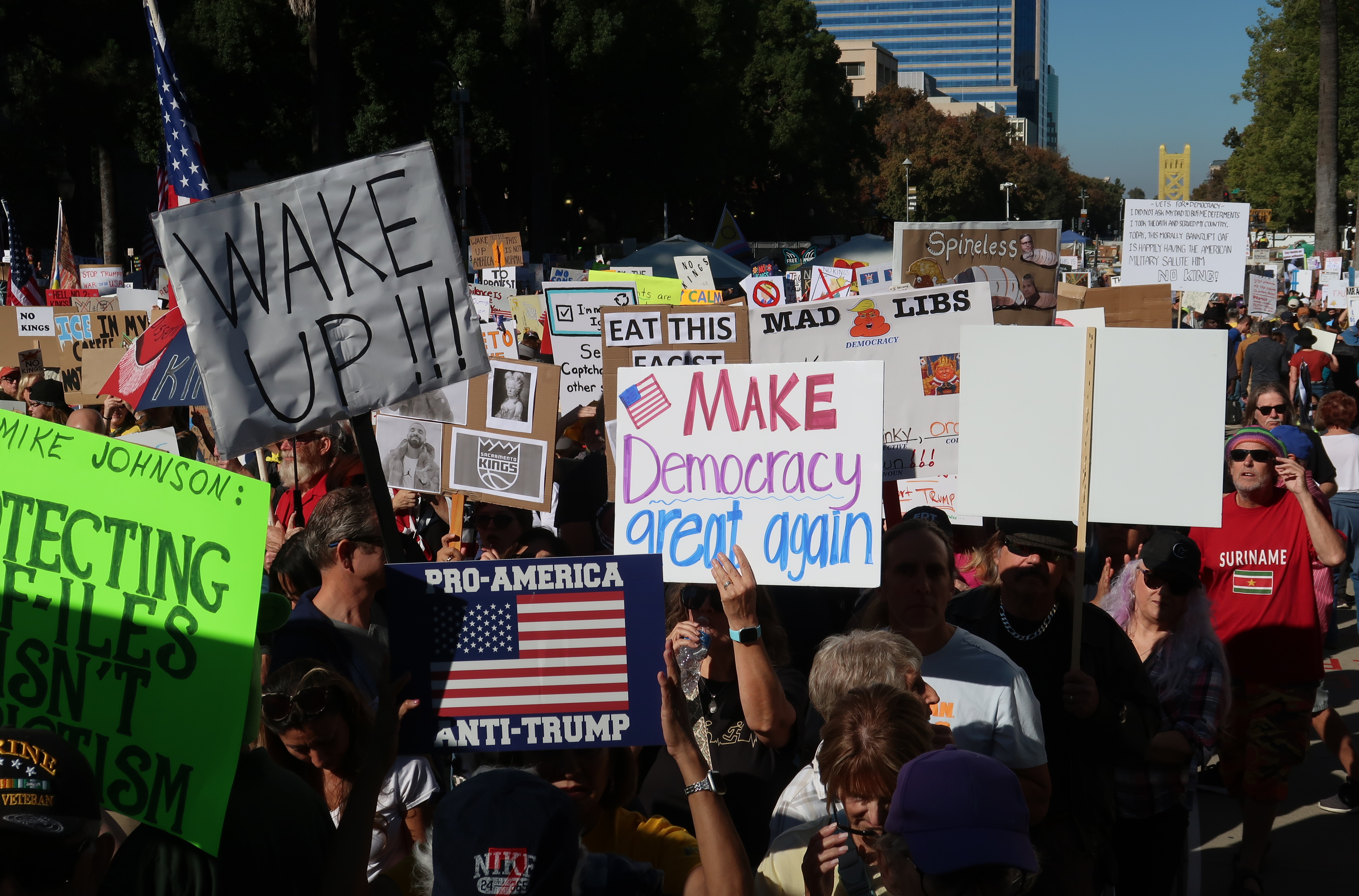 The view of the crowd towards the Capitol Mall bridge.