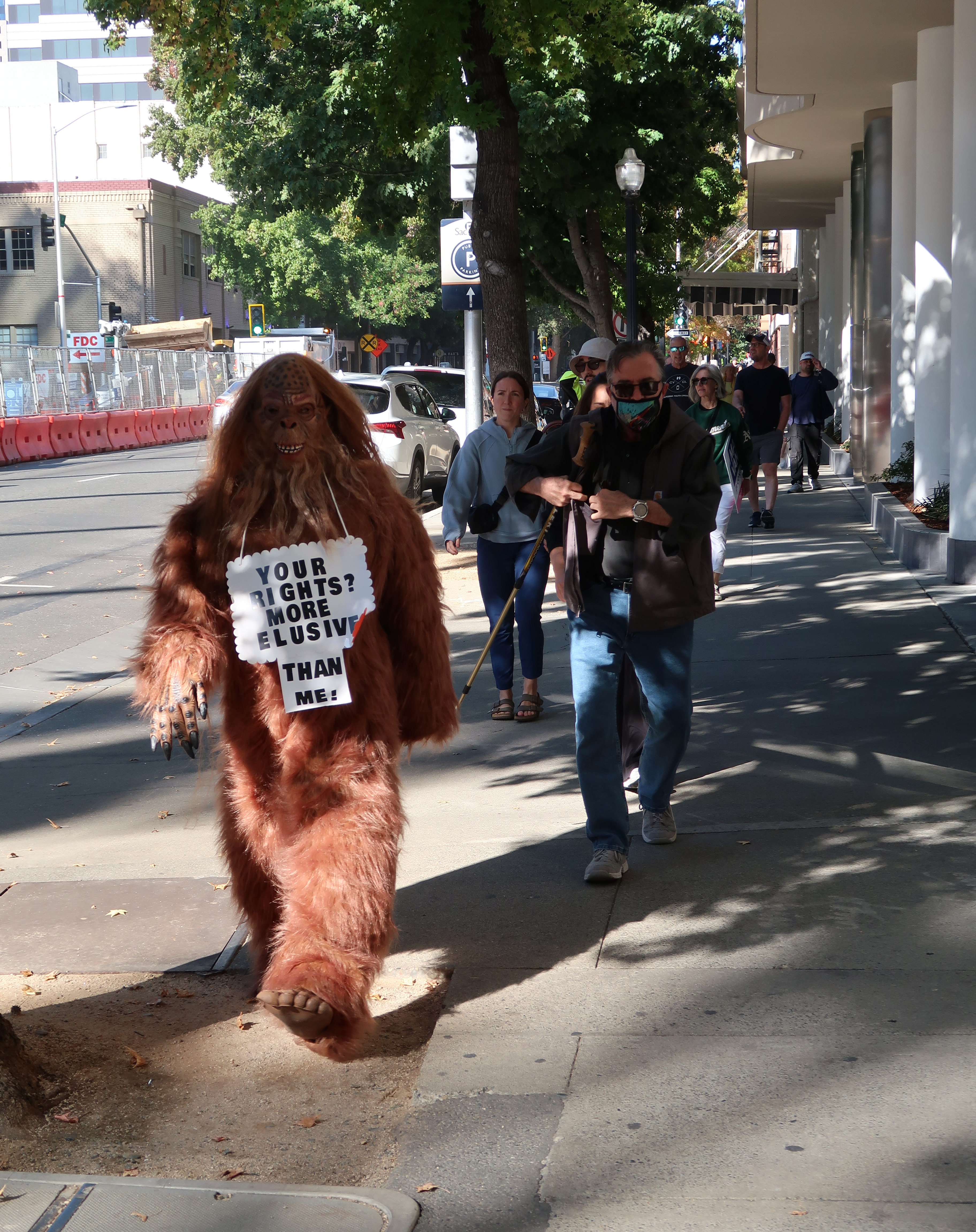 People and signs.