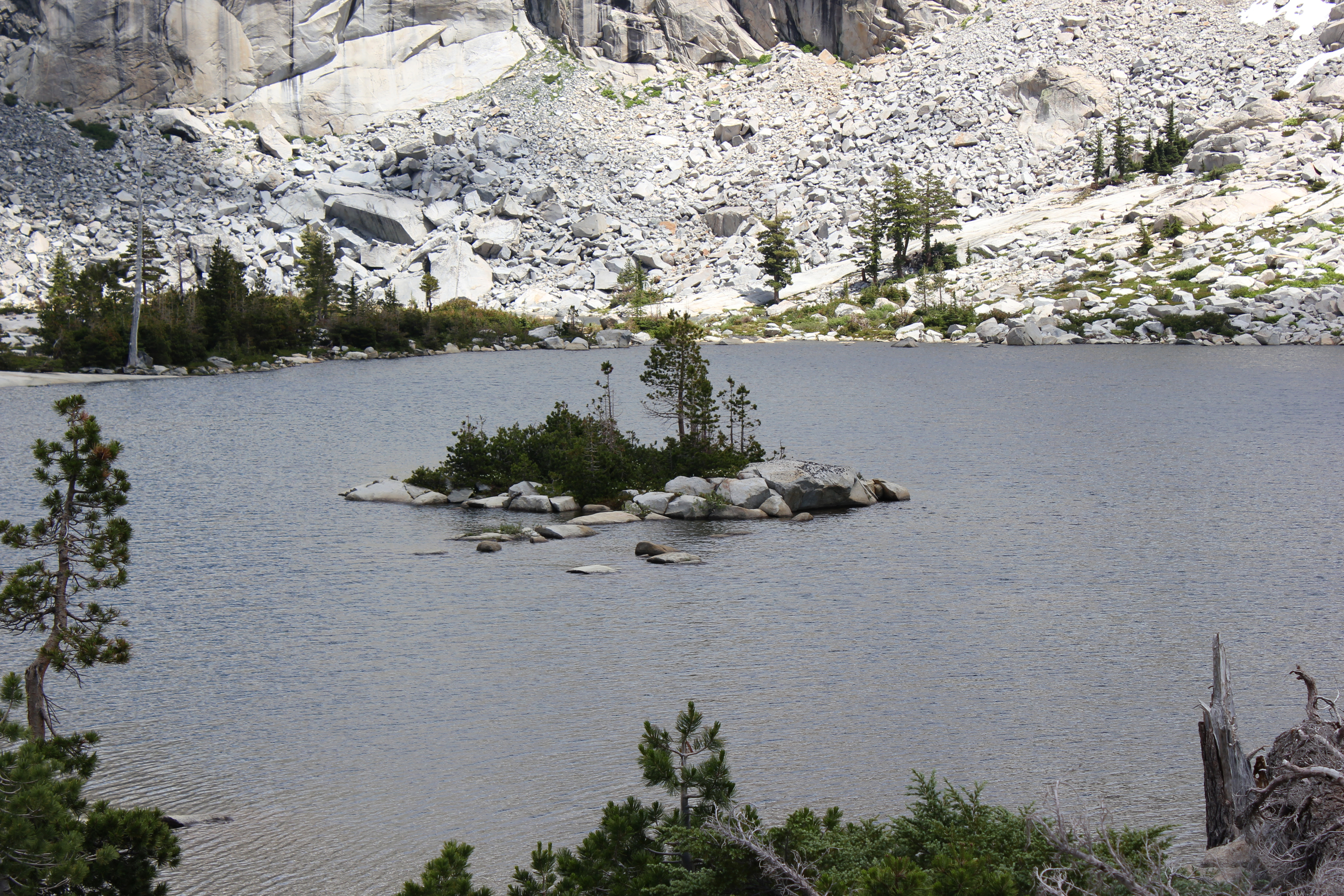 An island in the middle of the Twin Lakes.