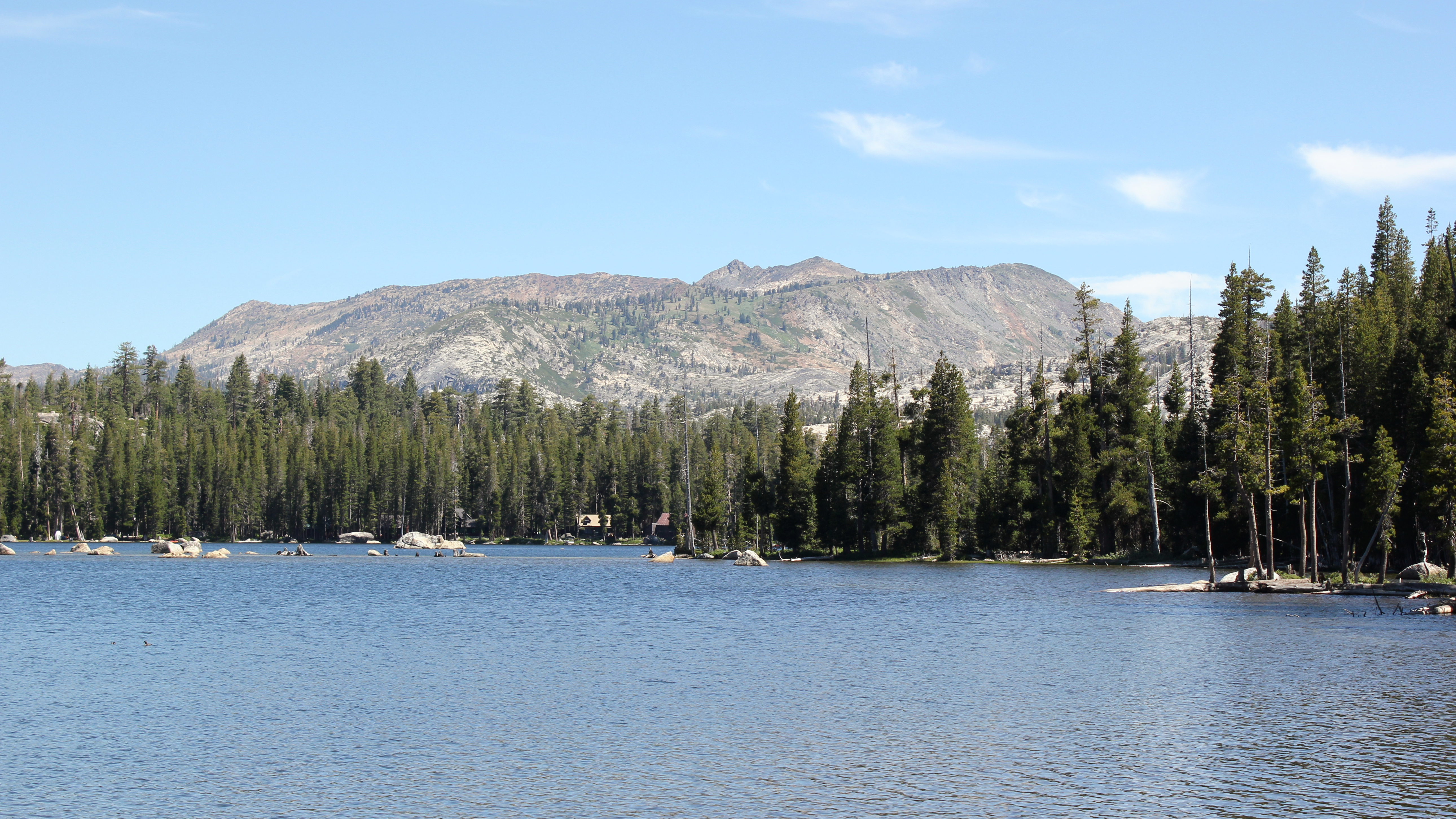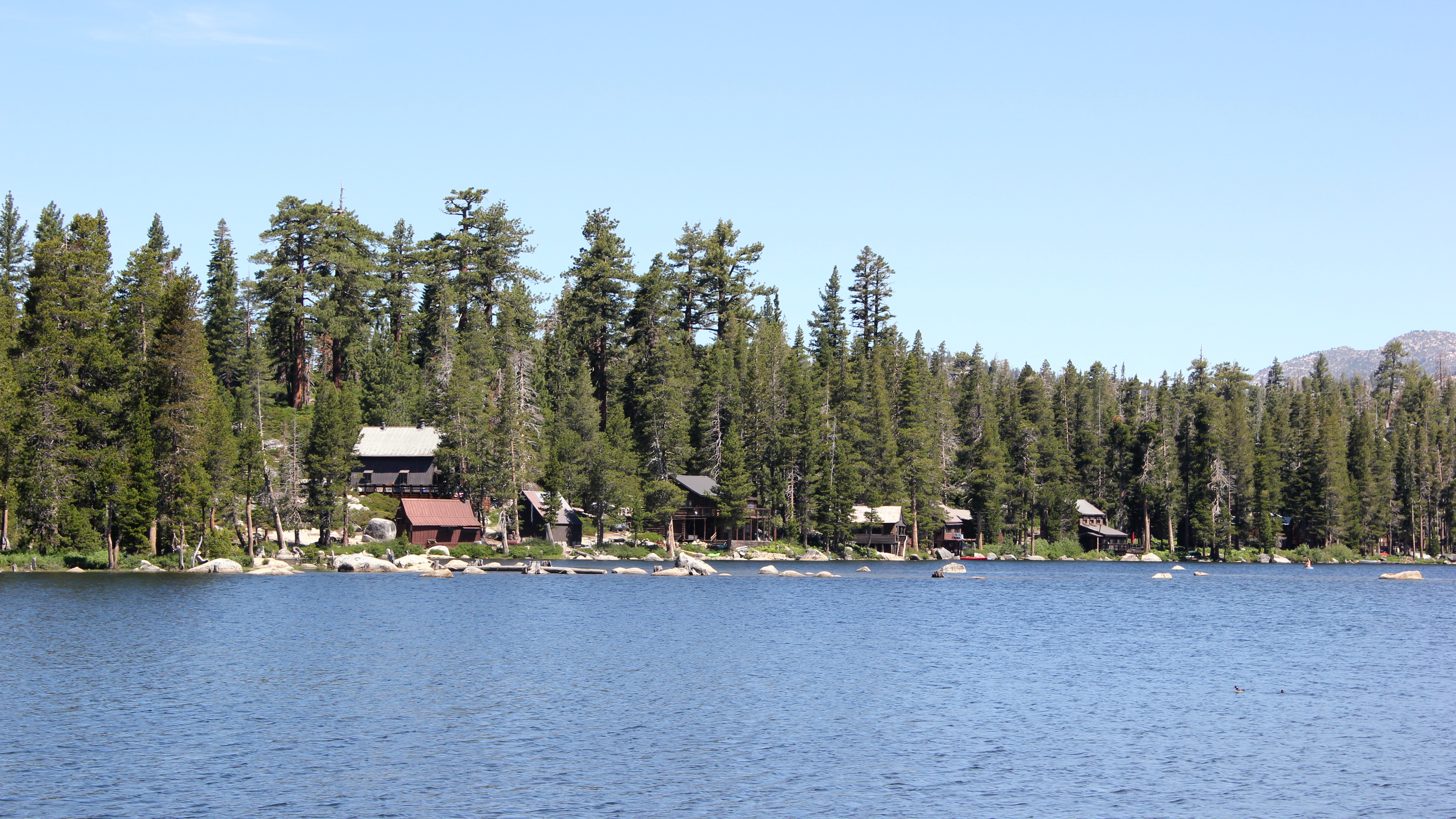 Some buildings on the shores of the Wrights Lake.